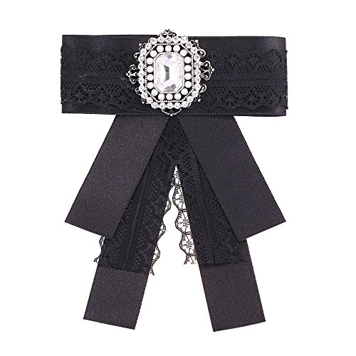 Akki, spilla con fiocco in velluto, raso, nastro di seta, per abbigliamento da donna, con perline e brillantini, colore nero, bianco, rosso, blu, verde e rosa
