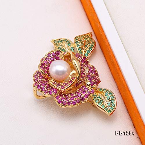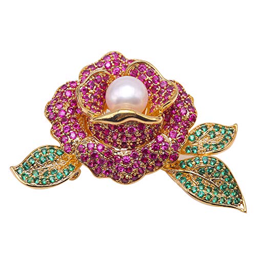 JYX Spilla floreale 8,5 mm perla bianca naturale perla d'acqua dolce spilla per le donne Natale