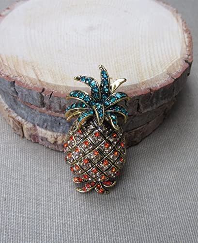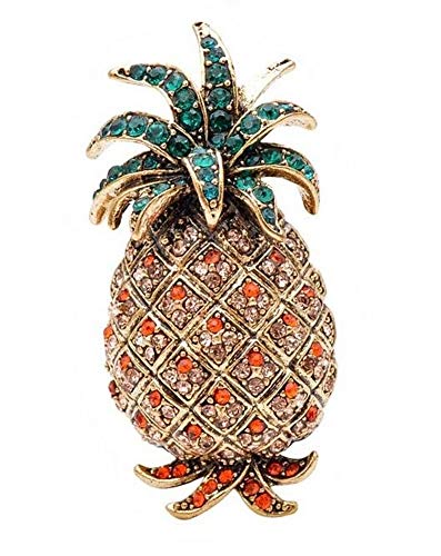 Spilla a forma di ananas con strass di cristallo verde e arancione.