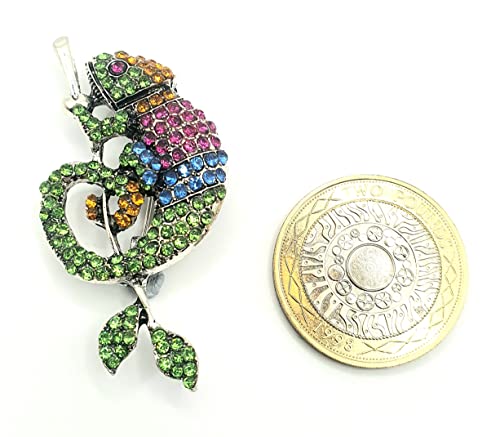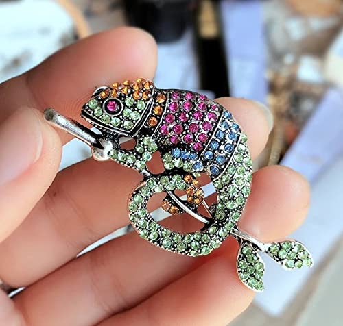 Spilla a forma di camaleonte in metallo di lusso rosa argento e verde con strass e strass