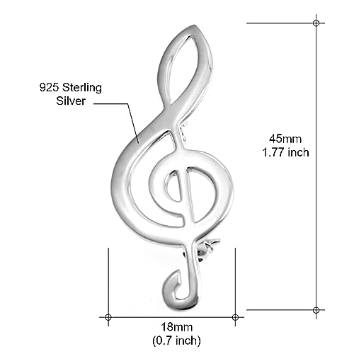 Design: spilla a forma di chiave di violino in argento Sterling 925 massiccio. Questa spilla musicale ha una chiusura a perno che permette di essere infilata attraverso un indumento e fissata.