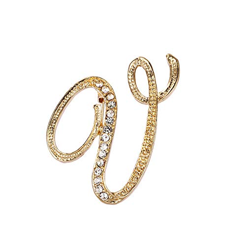 BBLL Spilla 26 Lettere iniziali dalla A alla Z Spilla in Cristallo Trasparente con Strass Spille per Gioielli da Donna in Placcato Color Oro Lettera V