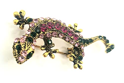Spilla di lusso con lucertola rosa con strass e strass