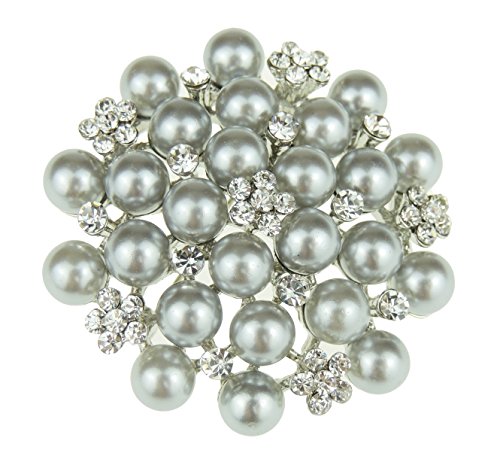 Spilla nuziale da donna di 5,5 cm, con perle finte e strass, base metal, colore: Dark Grey, cod. gg