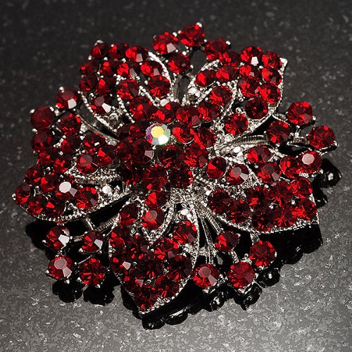 Spilla in stile vittoriano a forma di fiore (argento e bordeaux)