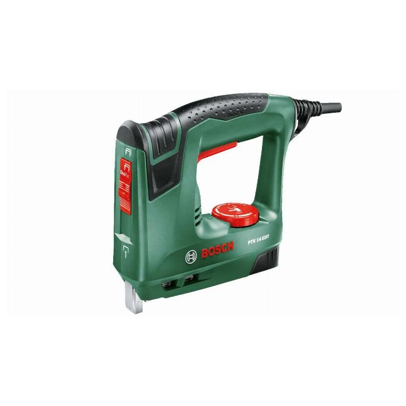 Offre la scelta tra graffette e puntine per fissare molti materiali al legno Questa versatile cucitrice combina comfort, semplicità e funzionalità. facilità d'uso e ottima adattabilità. Con il dispositivo DuoTac è facile passare dalla pinzatura singola a quella doppia per soddisfare le esigenze di ciascun progetto. La selezione elettronica della forza d'impatto garantisce risultati perfetti indipendentemente dal materiale. Il sistema Push+Release migliora la sicurezza. e controllo dell'utilizzo evitando qualsiasi attivazione intempestiva. Il PTK 14 EDT è ideale per fissare su legno materiali teneri e sottili. Grazie al caricabatterie con indicatore di riserva, l'utente non rischia più di ritrovarsi senza graffette o punte