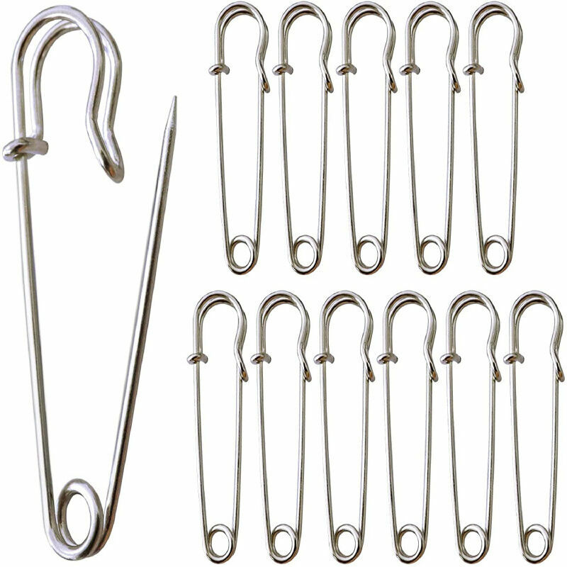 Set di spille da balia grandi - Set di 12 spille da balia grandi, abbastanza lunghe e resistenti da unire materiali pesanti come lana, pelle, tela, vinile, ecc. che è sufficiente per le tue diverse esigenze, puoi usarle a scuola, in ufficio, a casa. 【Durevole e robusto】 Le grandi spille di sicurezza sono realizzate in acciaio inossidabile nichelato, resistente alla ruggine e abbastanza forte da essere utilizzato con materiali pesanti. i perni in metallo con testa di bloccaggio solida sono robusti e sicuri, non facili da piegare, affilati e facili da penetrare. 19 mm di larghezza, uno strumento utile per i tuoi progetti artigianali o per attaccare piccole decorazioni ai tuoi vestiti. facilmente, con una superficie lucida, si adatta più facilmente alle tue diverse esigenze. .