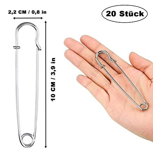 Spille da Balia, Spille da Balia Grandi 10 cm, per Coperte, Gonne e Artigianato, 20 Pezzi, Argento