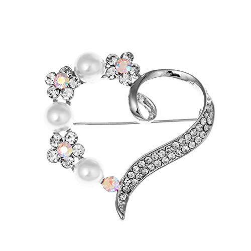 Spille da Donna Spille Spille a Cuore per Le Donne Designer Cubic Zirconia 2 Colori Brillanti Love Party Spilla da Ufficio Spilla Regali,argento