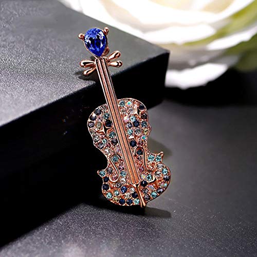 Spilla da donna a forma di violino con strass brillanti intarsiati, squisita ed elegante da indossare.
