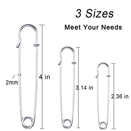 ♚ 【Set di spille di sicurezza grandi】 6 pezzi spille di sicurezza in argento da 2,36 pollici, 7 pezzi spille di sicurezza in argento da 3,15 pollici, 7 pezzi spille di sicurezza in argento da 4 pollici. Il totale è di 20 pezzi, potrebbe soddisfare le tue diverse esigenze.