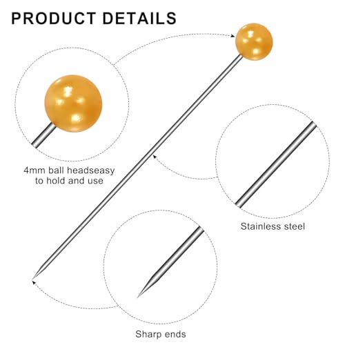 Materiale di alta qualità: Gli spilli per cucire con testa a sfera in plastica sono realizzati in acciaio inossidabile. L'ago è affilato e non è facile da ossidare e arrugginire. Le perle rotonde colorate all'estremità sono realizzate in plastica di alta qualità, leggera e non fragile.