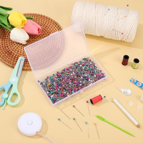 Spilli da Sarta 600 Pezzi Spille Dritti Colorata Spille da Cucire con Testa di Vetro a Sfera per Tessuto Gioielli Fai da Te Progetti di Artigianato e Cucito 38mm