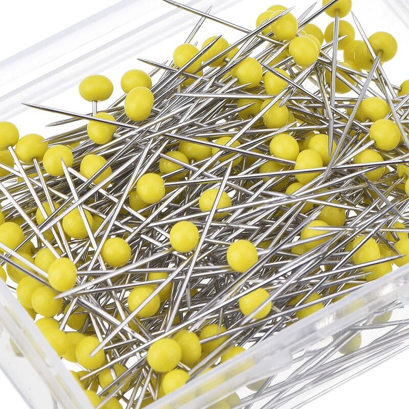 Colore: Giallo Caratteristiche: Palla da 250 pezzi spilli con testa in vetro giallo Lunghezza delle bacchette di vetro: 1,5 pollici Colore: testa a sfera bianca Per realizzare o decorare oggetti di cucito o artigianato Cosa è incluso: 250 spilli dritti