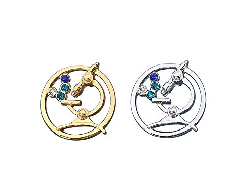 Set di 2 spilli tondi Microscopio Laboratoire Science Acciaio Dorato e Argento
