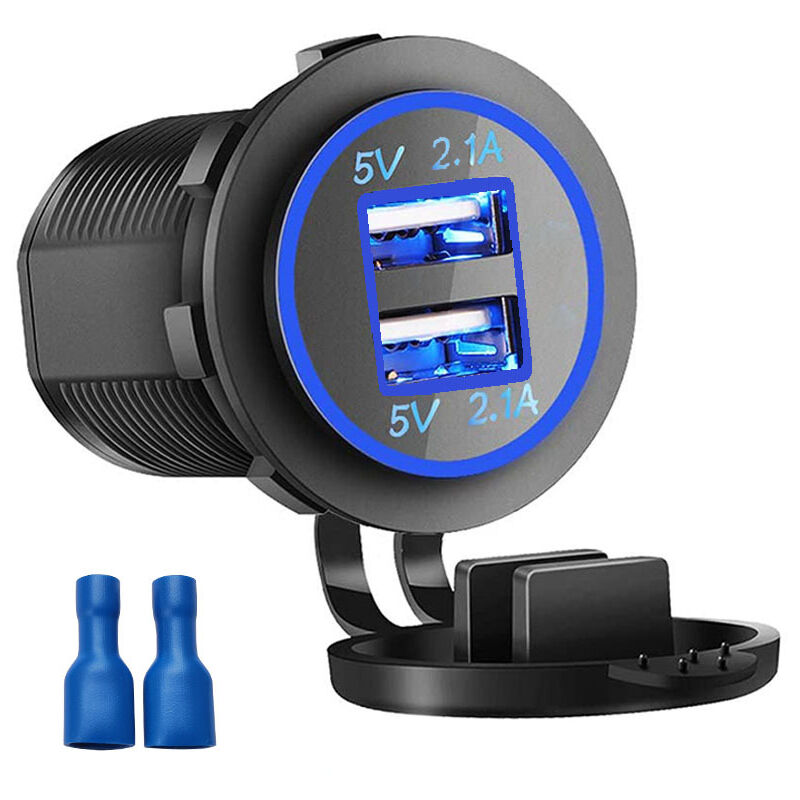 Certificazione di sicurezza - Certificato CE e ROHS, con protezione da sovraccarico, funzione di protezione da cortocircuito per garantire una ricarica sicura. È inoltre resistente alle alte temperature, alle basse temperature e ha proprietà ignifughe 【 funzione protettiva】 Realizzato in materiale ABS ecologico con una migliore dissipazione del calore e una buona stabilità. Quando il dispositivo è completamente carico, puoi utilizzare il coperchio dell'interfaccia USB per proteggere la porta USB, impermeabile e antipolvere, che può proteggere efficacemente il caricabatterie da schizzi improvvisi e prolungarne la durata. 【Compatibilità】2,4 A per porta, adatto per auto, barca, moto e altri dispositivi con porta USB 12/24 V CC, come GPS, iPhone, iPod, telefoni cellulari, fotocamere digitali. 【set di pacchetti】Caricabatteria da auto Dual USB * 1 terminale blu