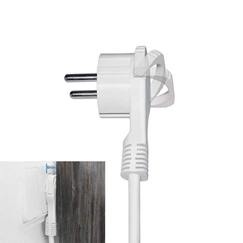 Connettore a gomito | La spina europea si adatta dietro tutti i mobili grazie alla sua altezza molto piatta di soli 8 mm. L'archetto pieghevole consente di estrarre facilmente il cavo dalla presa di corrente.