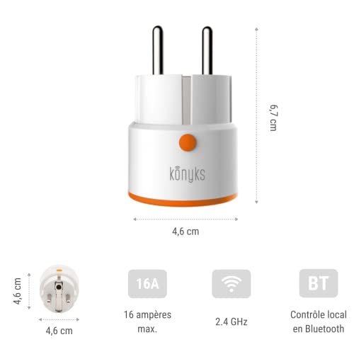 Spina connessa, Konyks Priska Max Easy EU Connected - WiFi + Bluetooth, 16A, 3680W, Contatore di energia, compatibile con Alexa e Google Home, automazioni facili, bianco