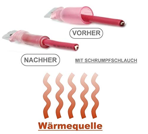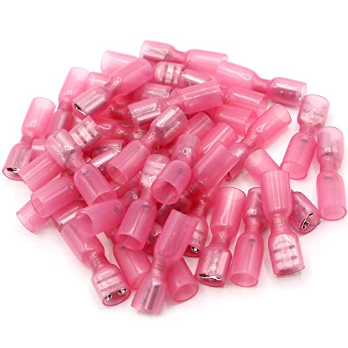 Spina piatta, capicorda con tubo termoretraibile, completamente isolato, connettore femminile, larghezza connettore 6,3 mm, rosso, 0,5 - 1,5 mm² (25 pezzi, rosso: manicotti piatti/completamente
