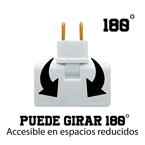 Dettagli tecnici: È ideale per collegare più dispositivi, è possibile collegare il caricabatterie del cellulare, il computer e il tablet alla volta. Inoltre ha diverse posizioni perché può ruotare di 180°. Il fatto che la nostra spina multipla piatta possa ruotare facilita notevolmente il collegamento di dispositivi elettronici in spazi ristretti. Siamo venuti per semplificarti la vita con la nostra presa piatta
