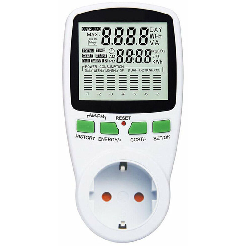 Caratteristiche: Display LCD, dati di facile lettura. Collega semplicemente questo dispositivo alla presa elettrica a muro. Misura vari parametri: potenza, tensione, corrente. Risparmia: calcola le spese di elettricità. Specifiche: Spina:UE Materiale: PC+Rame Assorbimento energetico del Power Meter Monitor: 0,5 W Tensione di esercizio: AC 230V 50HZ Corrente di funzionamento: max 16A Ampio intervallo di tensione: 230V-250V Il display della potenza impostata (Watt) è 0W~9999W;