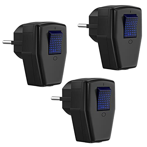 Spina Schuko con interruttore, 3 pezzi, spina Schuko con contatto di protezione, spina angolare IP20, 250 V, 16 A, adatta per interni, colore nero