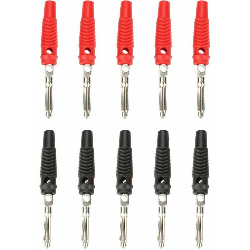 Diametro I connettori a banana hanno una dimensione standard di 4 mm di diametro, adatti alla maggior parte degli altoparlanti del mondo. Collegamento sicuro del cavo per il connettore dell'altoparlante o il ricevitore audio. Funzione Questi spinotti a banana per altoparlanti nichelati offrono il massimo trasferimento del segnale e durata. < p>Pratico Comodo connettore a vite. Per avvitare, fissare il filo nell'adattatore senza saldatura, facile da collegare. Alta qualità Buona tecnologia, nichelatura superficiale, resistente all'ossidazione e bella. Realizzati in lega di alta qualità e con una buona conduttività elettrica, sono isolati con terminale in plastica ABS e facili da usare. Economico Questa confezione contiene 10 pezzi di spinotti a banana, il sostituto ideale per quello rotto.