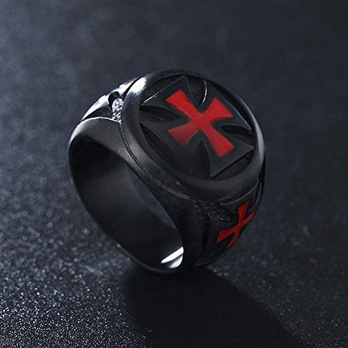 Sping Jewelry I Cavalieri Templari Anello Croce Rossa Anelli in Acciaio al Titanio Nero per Uomo Ragazzi
