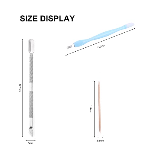 【Uso a doppia estremità】 Lo spingipelle a doppia estremità in acciaio inossidabile massimizza l'uso del volume, un'estremità può rimuovere la pelle morta, spingere delicatamente via lo smalto quando si rimuove l'unghia e l'altra estremità può rimuovere lo sporco nella cucitura dell'unghia e il bordo dell'unghia.