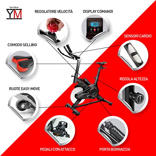 APP: provate il divertimento e nuovi metodi di allenamento con le nuove App compatibili ZWIFT e KINOMAP (selezionando marchio Your Move) e che consentono anche di proiettare video e percorsi di allenamento direttamente su TV e PC mentre si pedala (o semplicemente su Smartphone e Tablet) + condividere l'allenamento con amici, seguire allenamenti strutturati, raggiungere obbiettivi + funzione musica motivazionale + cronologia allenamento individuale + video coaching e moltissime altre funzioni.