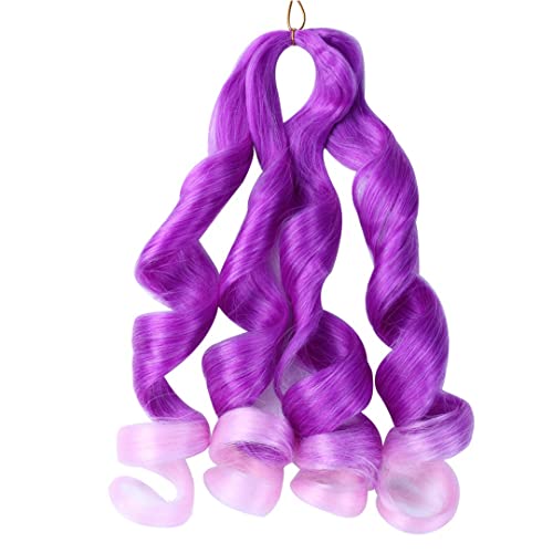Spiral Curl Braids Crochet Hair 22 Inch Loose Wave Braiding Hair Extensions For Braiding Ombre Crochet Braids Curly Ends Women Purple-pink 22inches 9Pcs/Lot