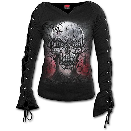 Spiral, maglietta da donna stile dark, con maniche aperte lateralmente e fissate con lacci, colore nero