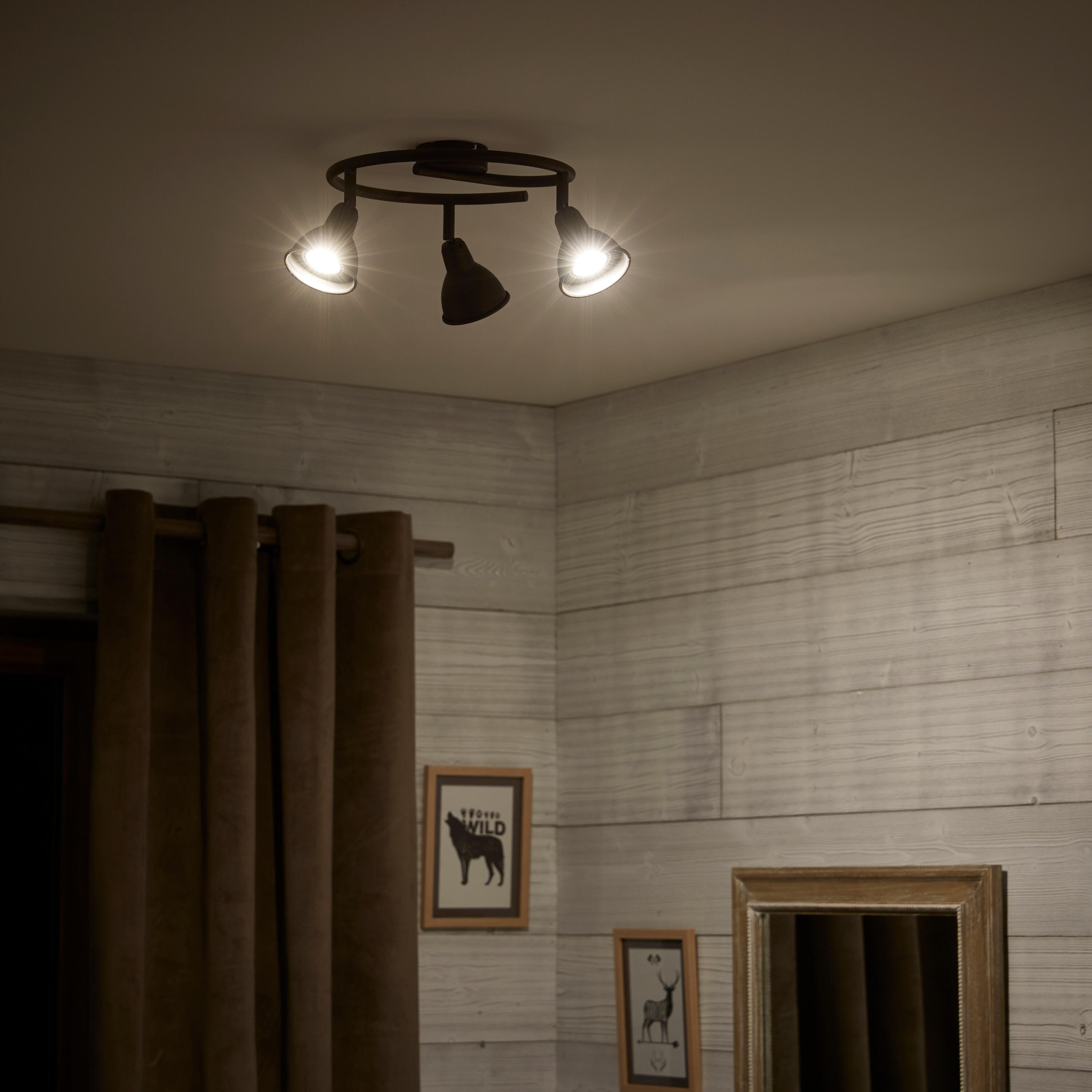Struttura color ruggine, diffusore in metallo colore ruggine, Ø 28 cm, 3 lampadine non incluse, attacco GU10 a baionetta, wattaggio massimo 35 W