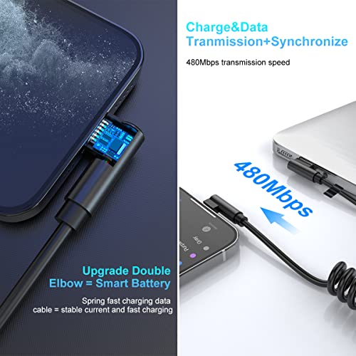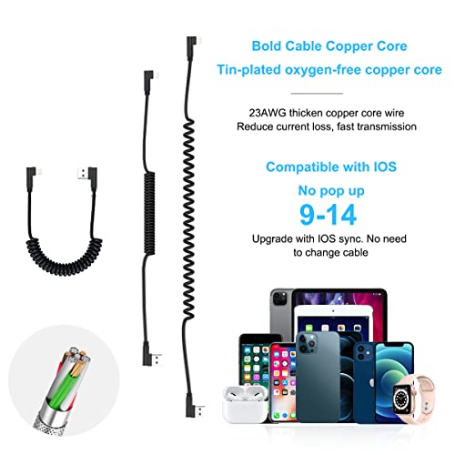 Cavo Di Spirale Per iPhone, Cavo Di Ricarica Apple Ad Angolo Retto A 90 Gradi [Certificato MFi e Compatibile Con Car Play] Cavo USB Trasmissione Dati, Adatto Per iPhone 14/13/12/11/SE/Xs/Xr/8/7 Plus