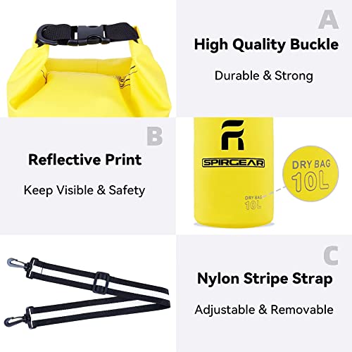 Spirgear borsa impermeabile con tracolla lunga e regolabile, 5L 10L 20L dry bag sacco sacchetto per pesca rafting nuoto kayak trekking campeggio, Giallo, 10L