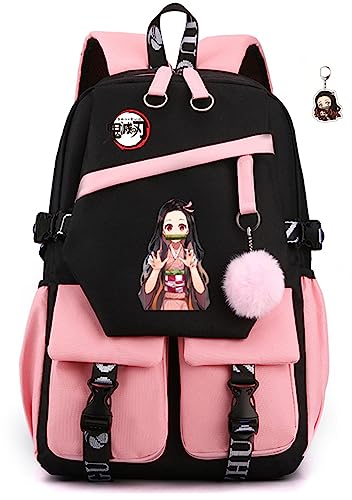 SPIRTUDE Zaino Anime Nezuko Zaino Daypack Bookbag Cosplay Laptop Zaini con portachiavi, Rosa-nezuko, 17 inch