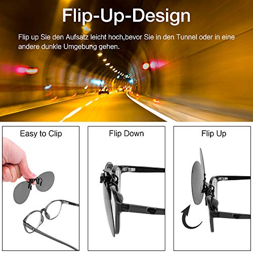 Splaks Occhiali da sole 2 pezzi clip on polarizzati Flip Up occhiali contro la luce ideale per guida notturna donne uomini portatori di occhiali rotondi lenti