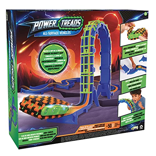 Contenuto: 1 veicolo fuoristrada Power TREADSTM, 22 strisce di cuscinetti, 1 set di pezzi per circuito di gravità, 1 manuale di istruzioni e 2 batterie da 1,5 V "AAA/LR03/R03 (incluse)