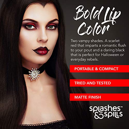 Splashes & Spills Vivid Black Lipstick - 2 pezzi - più forte, traslucido, senza lucentezza, colore labbra con finitura opaca - trucco e cosmetici