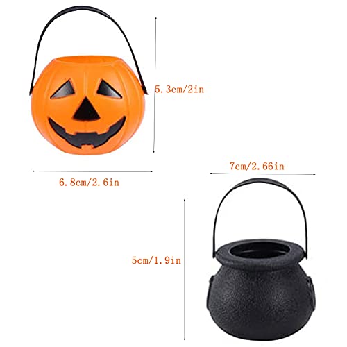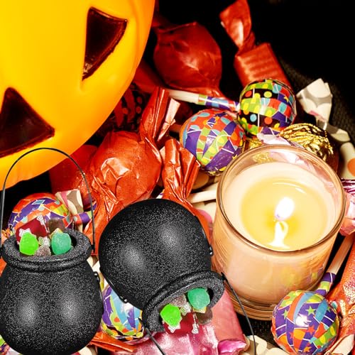 Splend 12 PCS Calderone Nero, con Manico Feste di Halloween, Secchio di Caramelle, Calderone Strega di Plastica Bollitore per Caramelle e Pentola d'oro