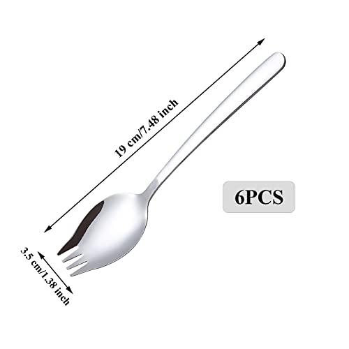 Splend 6 Pezzi 2 in 1 Forchette da Tavola, Acciaio Inox Cucchiai, 2 in 1 Cucchiaio Insalata Forchetta, per Campeggio Viaggio Ristorante Famiglia, Insalata di Frutta e Buffet (Argento)