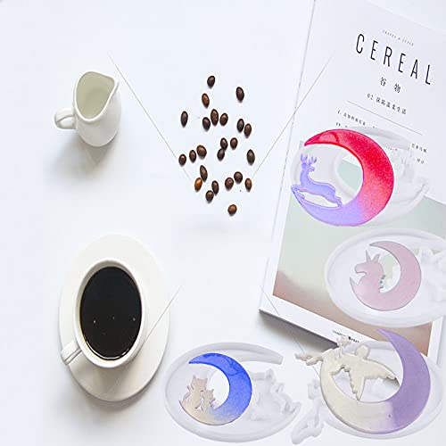 Splend 4 Pezzi Stampi in Resina Siliconica, Epossidica Siliconica Stampo, Stampi e Strumenti per Colata Luna Gatto Luna Cervo per Artigianato DIY Fatto a Mano