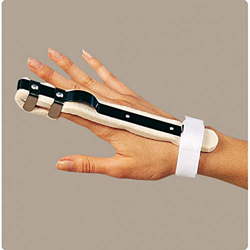 Splint ferula di Bunnel per estensione dito singolo, Tutore ortopedico indicato per immobilizzare e mantenere in estensione il dito della mano in caso di frattura delle falangi distali. La struttura in metallo modellabile, la morbida imbottitura interna e la possibiltà di agganciarlo al polso lo rendono personalizzabile e comodo da indossare.
