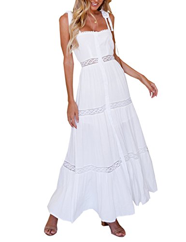 BMJL High Split Maxi Boho Beach button-up in pizzo bianco integrale abito estivo per le donne
