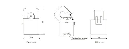 SPLIT CORE CURENT TRANSFORMER Seria TST016T Rated input: 50A Measured range: 24A Rated output: DC 4-20mA two-wire system Accuracy: 1% Linearity: 0.5% Supply voltage (±5%): +24V DC Current consumption: 38+Io mA Load: 6V