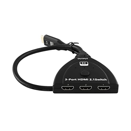 Commutatore HDMI 2.1 3 ingresso 1 uscita: lo switch HDMI 8K 3x1 trasmette video e audio da 3 diverse sorgenti HDMI a 1 display HDMI. Il commutatore HDMI 2.1 è ad alta velocità da 48 Gbps con cavo Pigtail. Nessun ritardo, nessun flash o perdita di risoluzione. È facile godersi il tempo di lavoro e il tempo di gioco passando tra 3 dispositivi con un pulsante.