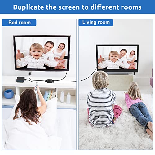 Trasmissione a lunga distanza - Splitter HDMI consente la trasmissione di dati ad alta larghezza di banda 3.4Gbps, con il cavo standard HDMI AWG26, la distanza tra ingresso e uscita potrebbe raggiungere fino a 32 m. Consentire che è duplicare lo schermo in diverse stanze. (L'estremità di ingresso e il trasmettitore di ingresso sono anche audio digitale che può raggiungere segnali 5.1)