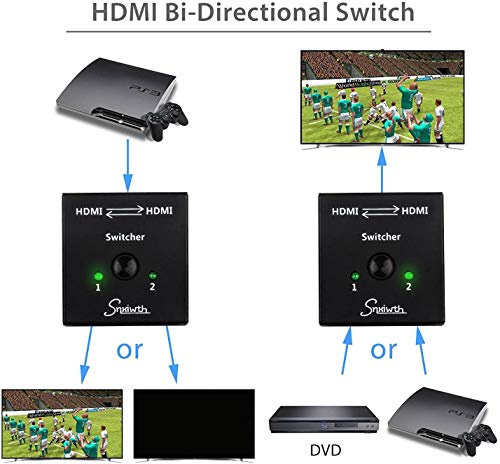 Splitter HDMI HDMI Bidirezionale 1 in 2 Out /2 Ingresso 1 Uscita - Supporta 4K 3D 1080P HD, Plug & Play - Commutatore HDMI Manuale per Xbox, PS4, PS3, Roku, Lettore Blu Ray, DVD, HDTV