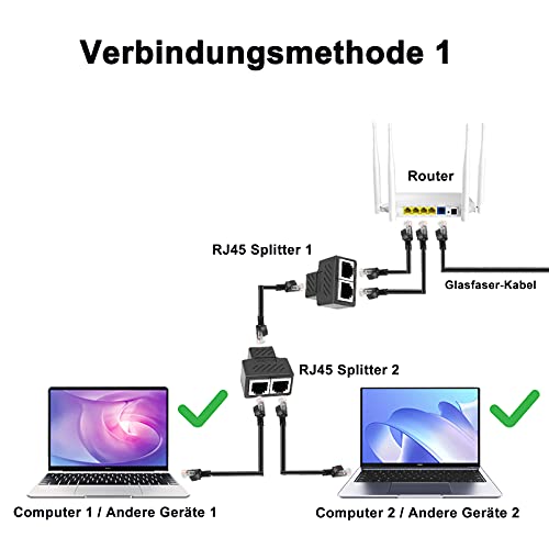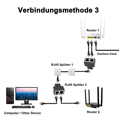 Ampia compatibilità Questo adattatore splitter di rete è compatibile con l'ambiente di rete Cat5/Cat5e/Cat6/Cat6e/Cat7, la connessione di rete tra dispositivi di rete wireless come patch panel, hub, router, switch, set-top box, ADSL, TV digitale, ecc. .