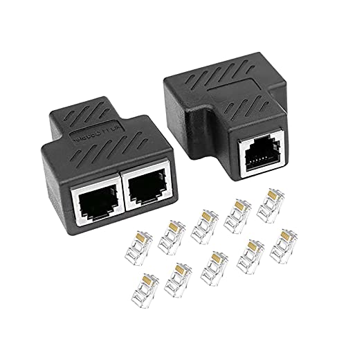 YLDY Splitter Lan Nero da 1 a 2 Contemporaneamente per Cavi RJ45 Cat5 / Cat5e / Cat6 / Cat6e / Cat7 e Supporta due Computer Contemporaneamente per Connettersi. (2 Pezzi + 10 teste di cristallo)